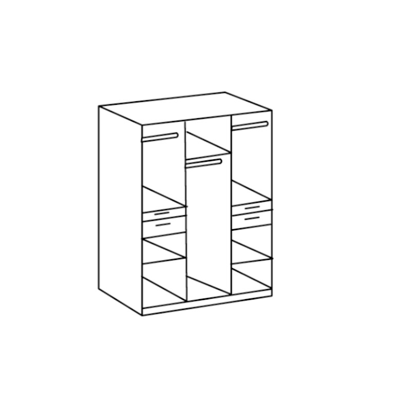 Riidekapp on valmistatud vastupidavast mööbliplaadist ning on viimistletud valgega. Riidekapp on nelja uksega. Keskmise peegelukse taga on mugavaks riiete hoiustamiseks üks vaheriiul ning riidepuu toru. Kahe väiksema ukse vahele jäävad kaks sahtlit, mis annab hea võimaluse hoiustada pisemad asju mugavalt. Ülemise ukse taga on riidepuutoru ning alumise ukse taga üks vaheriiul. Kapi käepidemed on valmistatud plastikust.