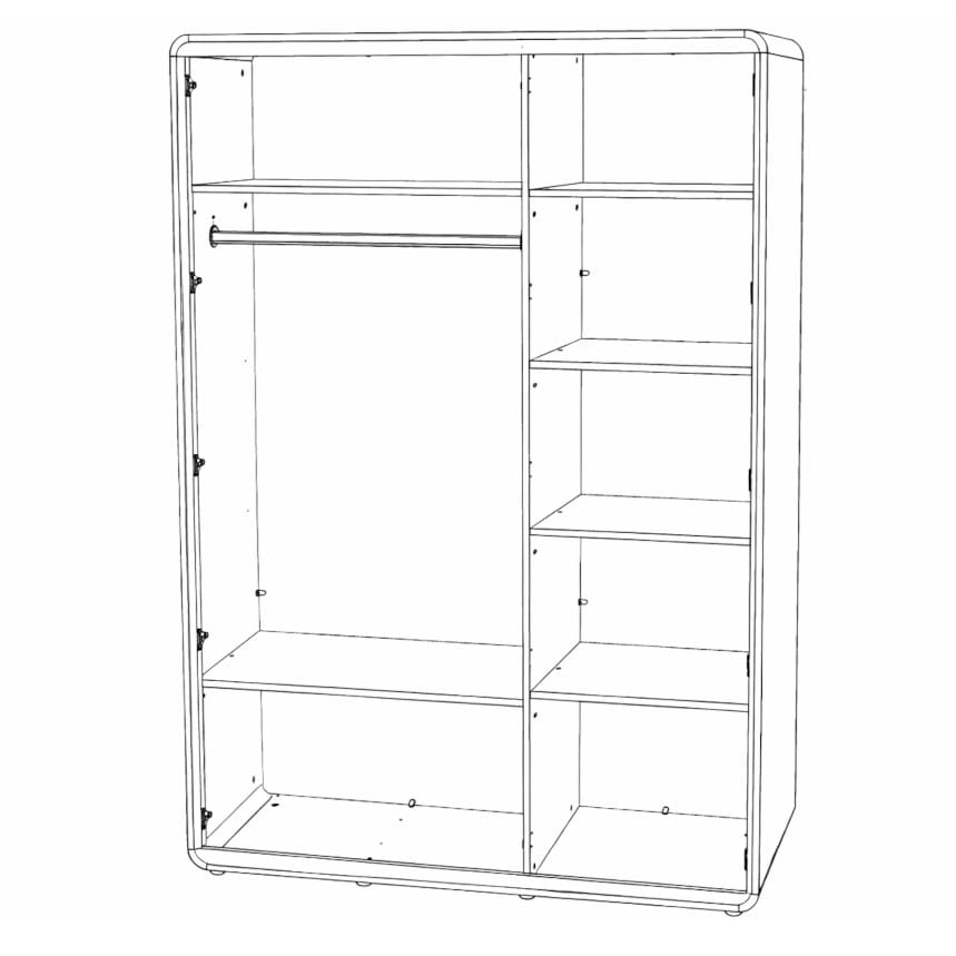 Kaunis puidumuster koos mustade detailidega rõhutab Lago sarja ajatut iseloomu, sobitudes suurepäraselt nii skandinaavialikku kui ka modernsesse kodusse. Kapp on jaotatud kaheks osaks. Vasakul pool üleval ja all üks riiul ning riidepuutoru, paremal pool neli riiulit.