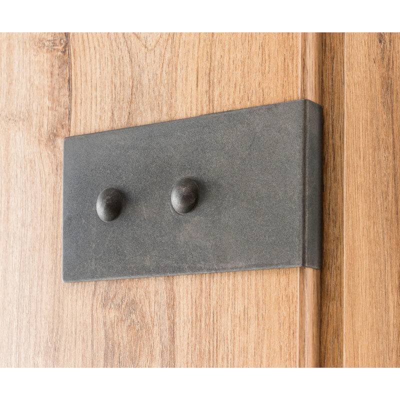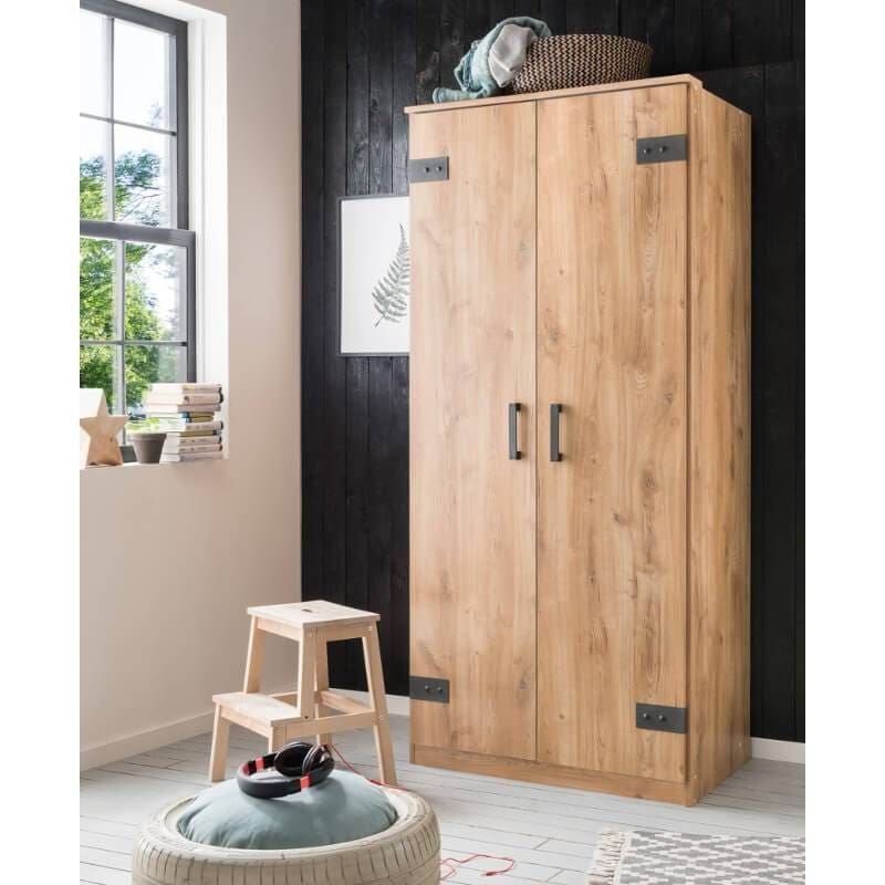 Riidekapp on valmistatud vastupidavast mööbliplaadist ning viimistletud tammeplangu imitatsiooniga. Kapi ühe ukse taga on kolm vaheriiulit mugavaks asjade hoiustamiseks. Teise ukse taga on üks vaheriiul ülemises osas ning selle all riidepuu toru.