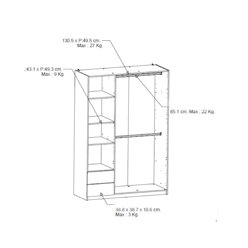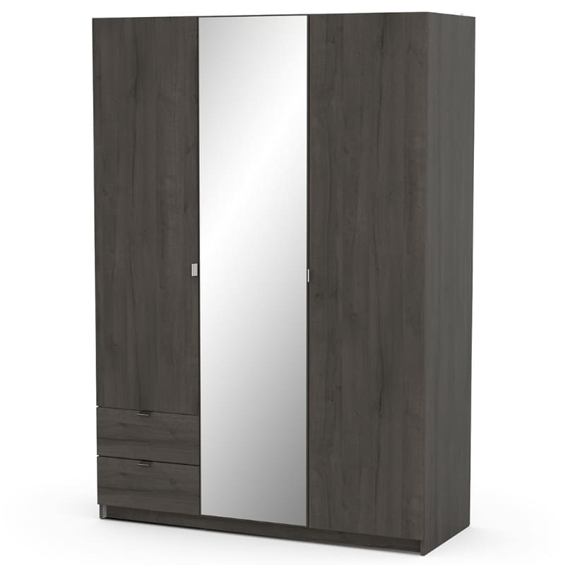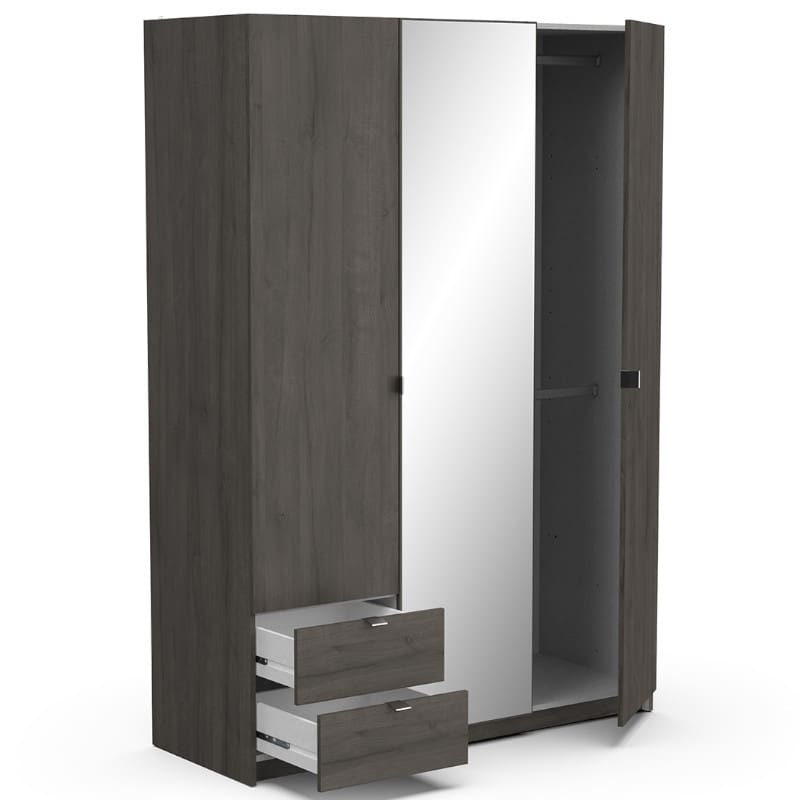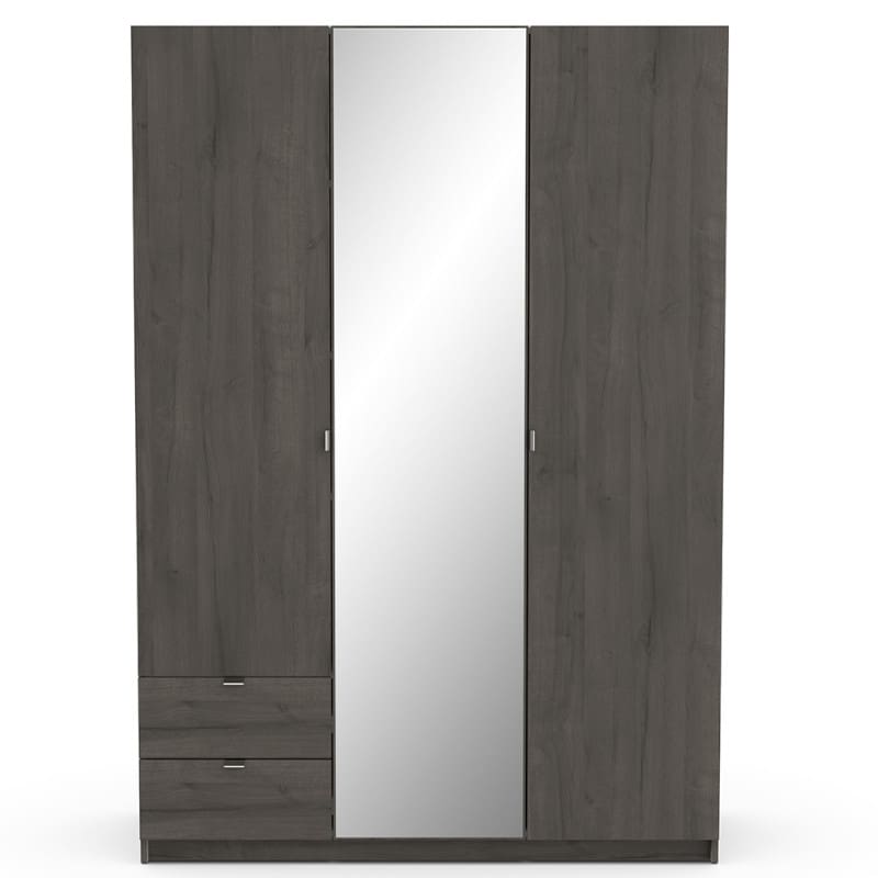 Riidekapp on valmistatud vastupidavast puitlaastplaadist ning waterford tamme imitatsiooniga. Kapp pakub häid võimalusi hoiustamiseks- peegelukse taga on kolm vaheriiulit, kaks nendest reguleeritava kõrgusega, keskmiste uste taga õleval ja all riidepuu toru. Kaks sahtlit liiguvad mugavalt metallsiinidel. Sahtli mõõdud 45 x 44 x 15 cm. Käepidemed värvitud plastikust.