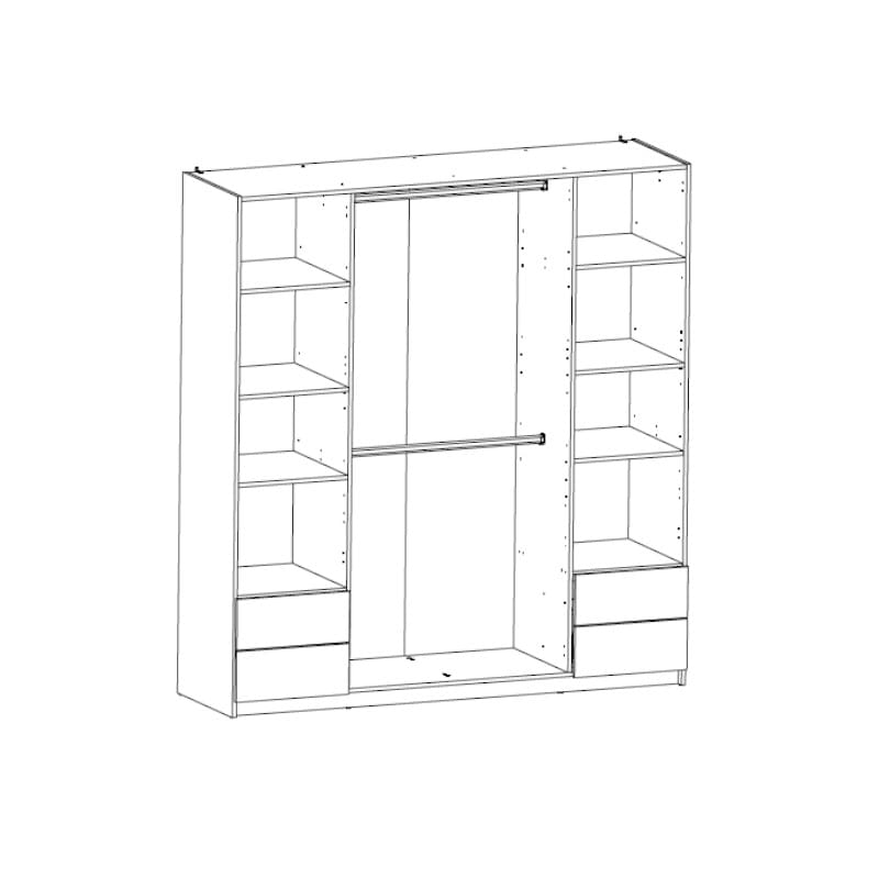 Riidekapp on valmistatud vastupidavast puitlaastplaadist ning kronbergi tamme imitatsiooniga. Kapp pakub häid võimalusi hoiustamiseks- keskmiste uste taga kaks riidepuutoru, äärmiste uste taga mugavad reguleeritava kõrgusega vaheriiulid. Alumises osas neli sahtlit.