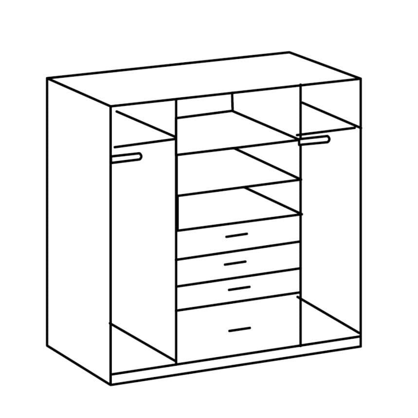 Kogu sarja mööbel on valmistatud kvaliteetsest mööbliplaadist ja saadaval erinevate viimistlustega. Kapp on nutikalt jaotatud kolmeks osaks, mõlemal pool ääres on ülemises osas riidepuutoru ja vaheriiul, keskel alumises osas neli sahtlit ning uste taga kaks vaheriiulit, pakkudes rohkelt hoiuruumi. Ustel olev peegel on praktiline ning lisab visuaalset avarust.