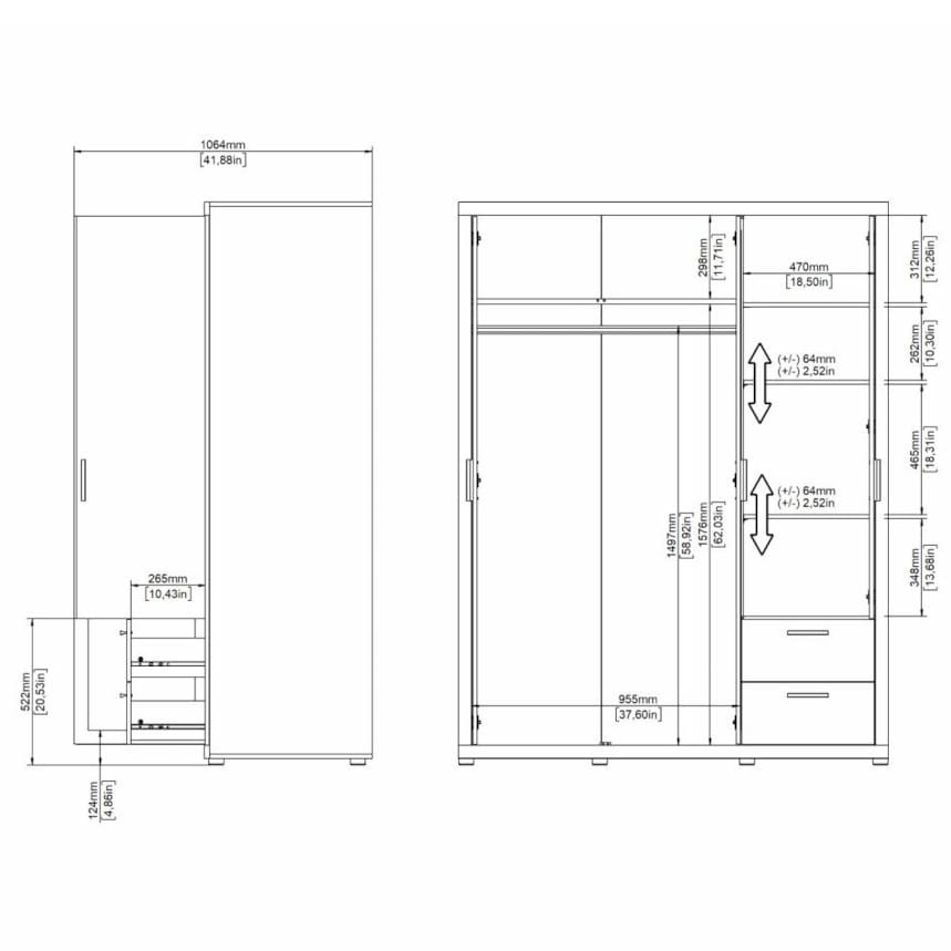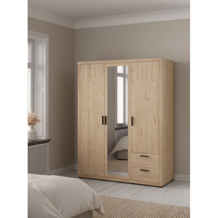 Sari on saadaval kahes viimistluses – naturaalse ilmega puidune hickory ning klassikaline valge- mis võimaldavad Mira mööblit hõlpsasti sobitada erinevatesse interjööridesse. Riidekapp on jaotatud kaheks osaks. Paremal pool kolm reguleeritavat vaheriiulit ning vasakul pool üks riidepuutoru, selle kohal samuti üks vaheriiul. Alumises osas kaks sahtlit. Jalad ja käepidemed plastikust.