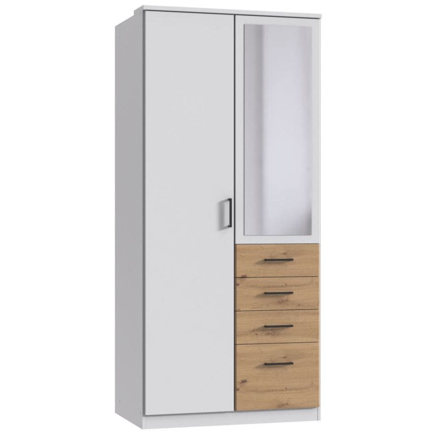 Kogu sarja mööbel on valmistatud kvaliteetsest mööbliplaadist. Kapp pakub mugavat hoiuruumi, kapp on jaotatud kolmeks osaks, mõlemal pool ääres ülemises osas üks riidepuutoru ning riiul, keskel kolm metallsiinidel liikuvat sahtlit ning kaks vaheriiulit. Käepidemed mustas toonis. Uksel olevad peeglid on praktilised ning lisavad avarust.