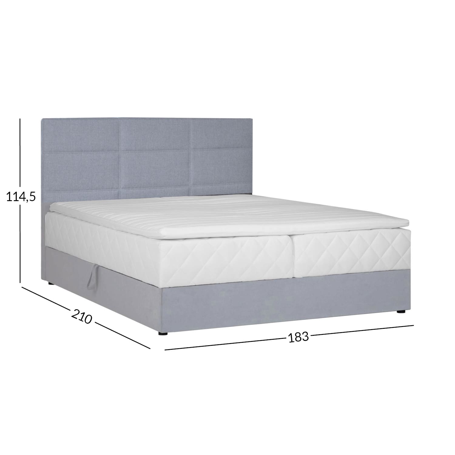 Kontinentaalvoodi LEVI 180x200cm, madratsiga, hall. Voodil on pocket-vedrustusega madrats, 210 vedru/m2. Vedrude kõrgus on 13cm. Vedrusid katab 23kg/m3 poroloonikiht, mis on 2cm paks. Madratsi jäikus: jäik. Kattemadratsi sisuks on 23kg/m3 poroloon. Kattemadrats on kaetud 200g/m2 polüestervatiiniga. Voodi all on mahukas panipaik, mis on valmistatud täispuidust ja lamineeritud puitlaastplaadist. Selle küljed on kaetud porolooniga. Voodi karkass on valmistatud täispuidust. Voodiraam on kaetud kangaga, Martindale 49 000. Komplekti kuulub voodipeats, mis on voodiga sama lai. Peatsi paksus on 7cm. Kaasas on ühenduselemendid peatsi kinnitamiseks voodi külge. Voodil on neli plastikust jalga, mis on musta värvi. Voodijalgade kõrgus on 2,5cm, kattemadratsi kõrgus 4cm, madratsi kõrgus 16cm. Voodi magamispinna kõrgus on 52cm. Toote mõõdud on 183x210x114,5cm. Toode on valmistatud EL-is.