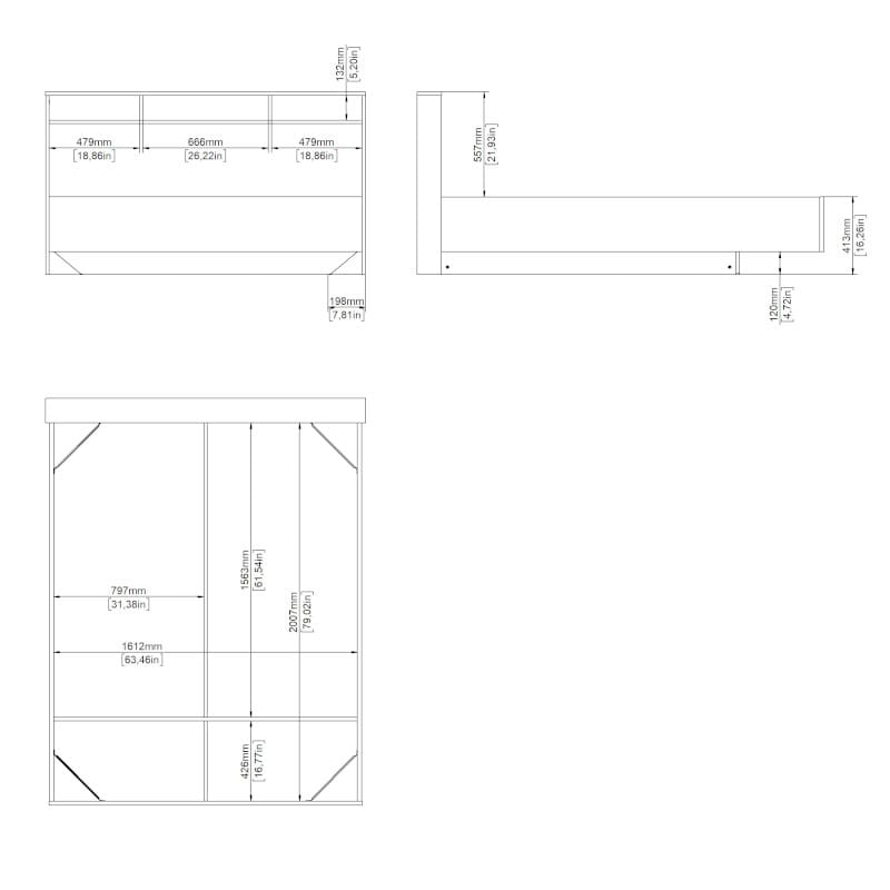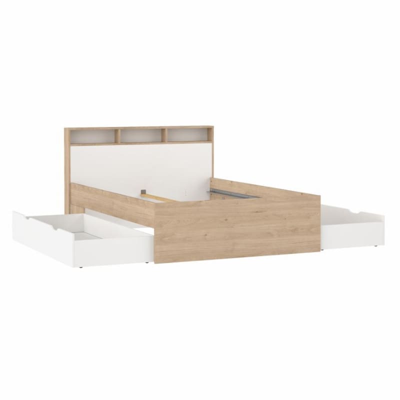 Kogu sarja mööbel on valmistatud mööbliplaadist, puidu imitatsioonis ja valges toonis. Voodil on kaks mugavat voodisahtlit. Peatsis on avatud sektsioon, mis lisab teie magamistoale nii funktsionaalsust kui ka stiili. Voodilipid ning madrats tuleb soetada eraldi.