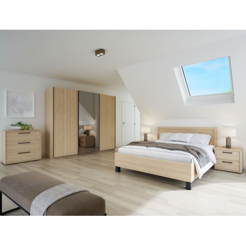 Kogu sarja mööbel on valmistatud melamiinkattega mööbliplaadist, sand tamme imitatsiooniga. Voodile sobib raamiga voodipõhi.