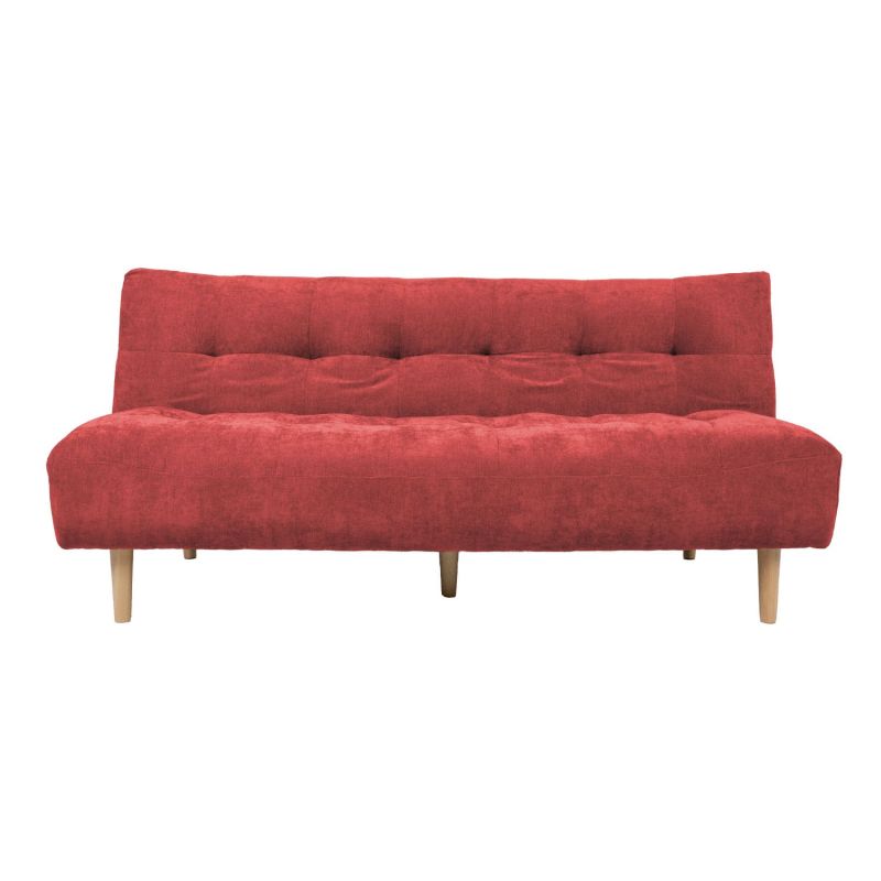 Diivanvoodi KIRUNA punane. Praktiline ja funktsionaalne click-clack mehhanismiga diivanvoodi sobib hästi väiksemasse korterisse, suvilasse või külalistetuppa. Diivani kattematerjal: 100% polüesterkangas. Karkass: puit, vineer. Polsterdus: polüuretaanvaht. Diivani üldmõõdud on 186x101xH87cm. Diivanvoodi mõõdud avatuna on 186x120xH40cm. Diivanil on heledad puidust jalad.