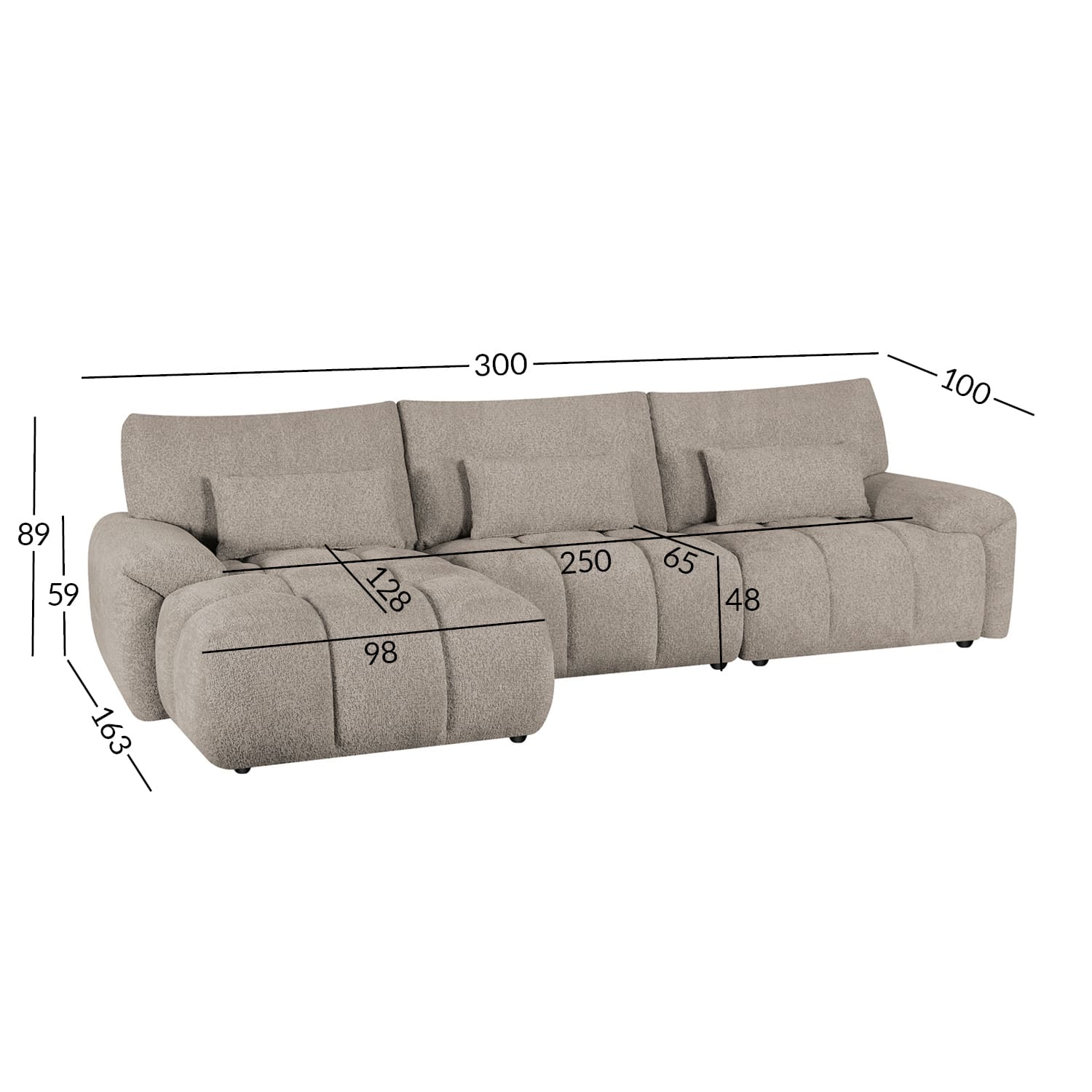 Diivani üldmõõdud: 300 x 100/163 x H89 cm.