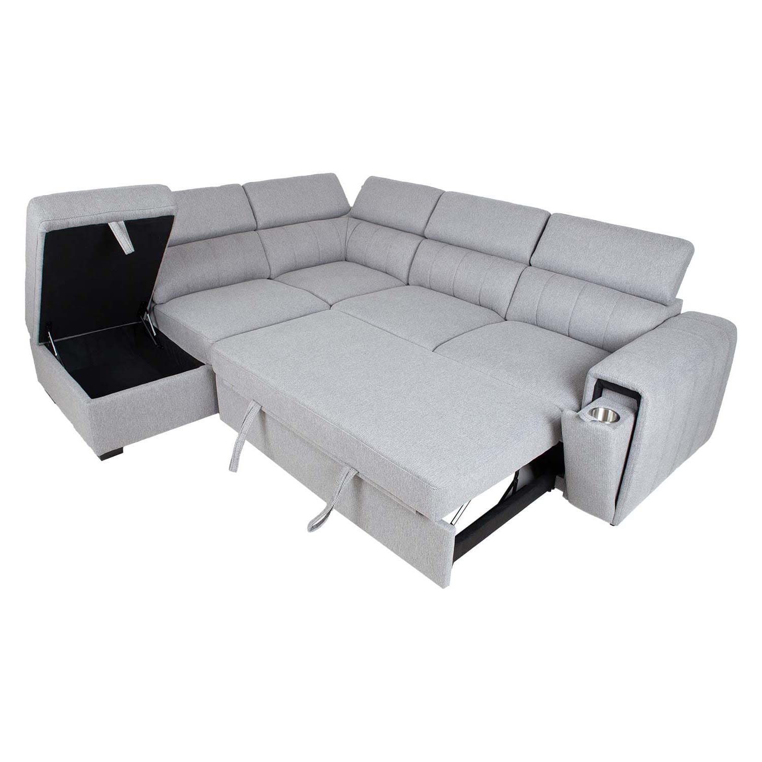 Mugav ja praktiline diivanvoodi võlub oma mitmekülgsusega. Reguleeritava kõrgusega seljatoed ja käetoe sisse peidetud topsihoidja pakuvad lisamugavust. Diivani nurgaosa all on panipaik.