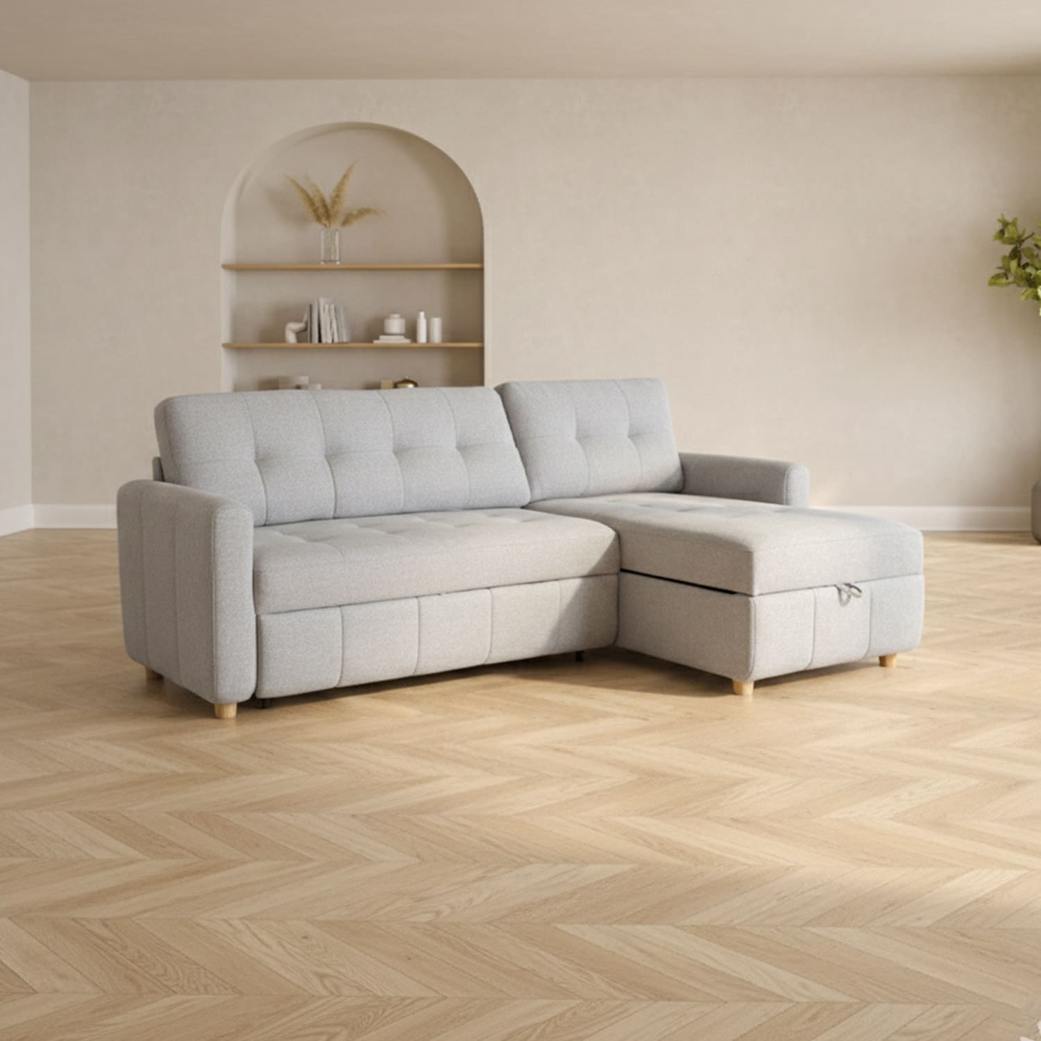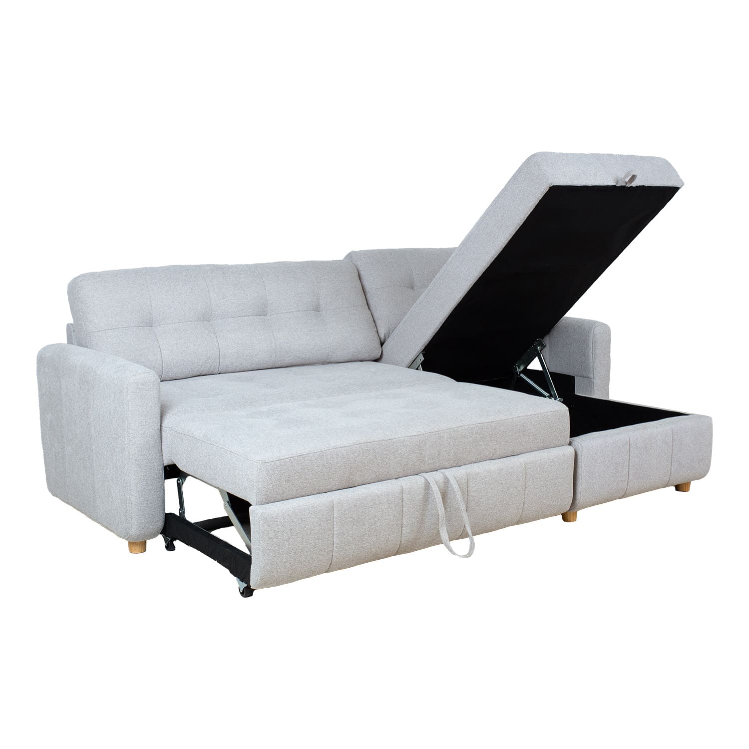 Diivan on lahtikäiv ning vajadusel saab seda kasutada voodina. Avamiseks tõmmake istme alla paigutatud pikendusosa ette välja ja tõstke istmega samale tasapinnale. Diivanvoodi on mõeldud kasutamiseks pigem külalisvoodina, kui igapäevase magamisasemena. Kasutage alati kattemadratsit. Diivani nurgaosa all on mahukas panipaik.