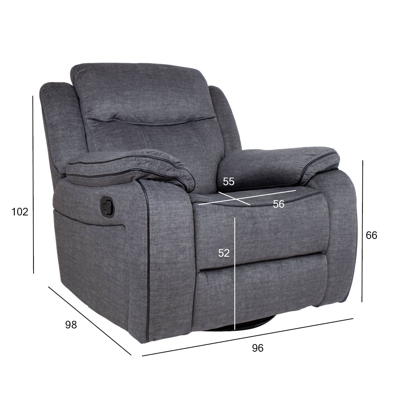 Tugitool GENTRY kiikuv ja pöörlev manuaalne recliner, hall.