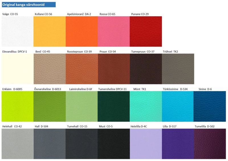 Original kangas on pehme spetsiaalselt mööbli jaoks loodud kunstnahk, mis on vastupidav ja tagades niiviisi kott-toolile pikaealisuse ning samas on sellest valmistatud kott-tooli väga kerge kõigest märja lapiga puhastada.