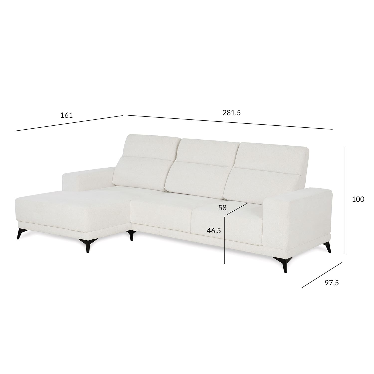 Nurgadiivan DARLA. Diivan on kaetud vastupidava polüesterkangaga, 400g/m², Oeko-Tex standard. Kattematerjali kulumiskindlus: 50000 Martindale’i. Diivanil on siksak vedrustus. Diivani konstruktsioon on valmistatud puidust, vineerist, OSB-plaadist, puitlaast- ja puitkiudplaadist. Diivanijalad on valmistatud metallist. Istme kõrgus on 44cm, istme sügavus on 61/81cm, istmeosa laius on 227cm. Käetugede kõrgus on 63cm ja laius 26cm. Jalgade kõrgus on 13.5cm. Toote mõõdud on 281,5×161/97,5xH104cm. HOOLDUS: puhastamiseks kasutage tolmuimejat. Kõik plekid või mustus tuleb viivitamatult puhastada neutraalse seebilahusega, hõõrudes lapiga sujuvate ringjate liigutustega.