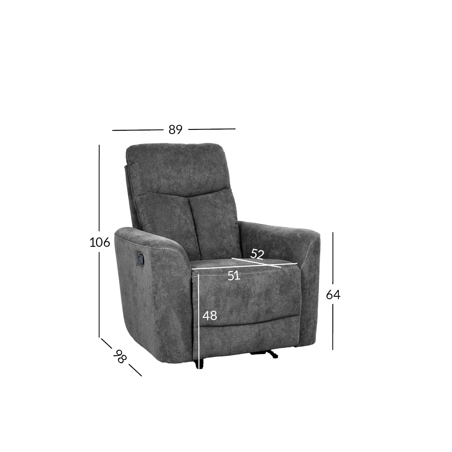 Avaleht » Tooted » Pehme mööbel » Tugitoolid » Tugitool GEMMA manuaalne recliner, hall