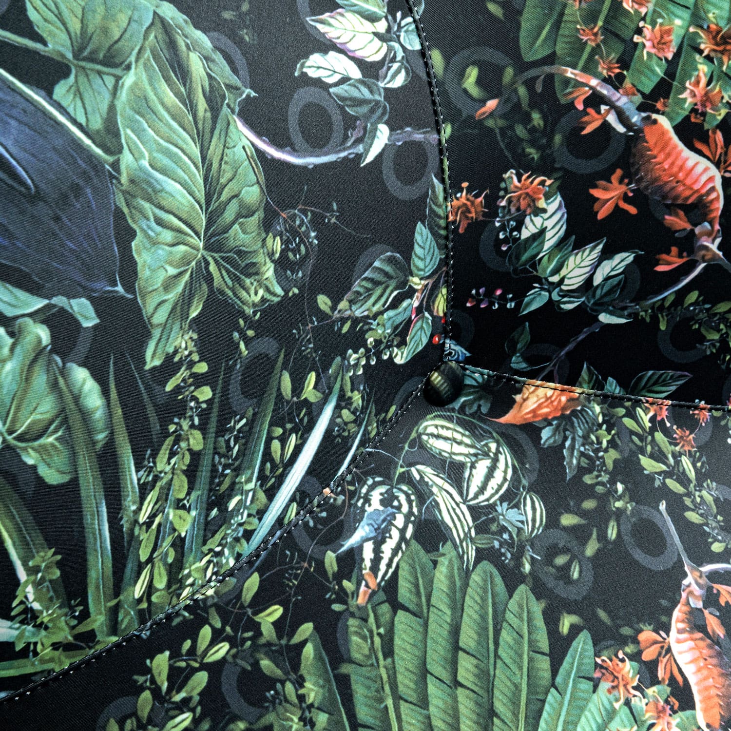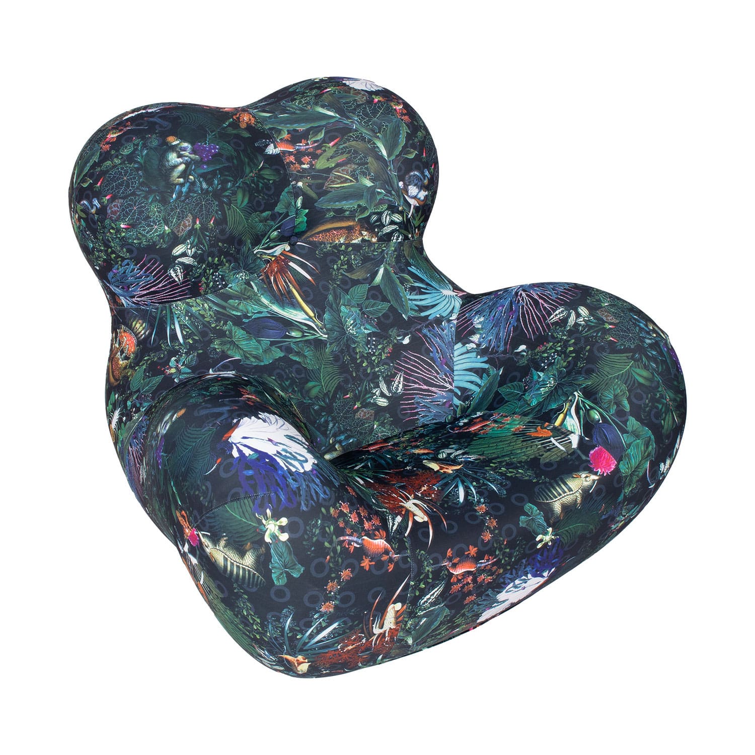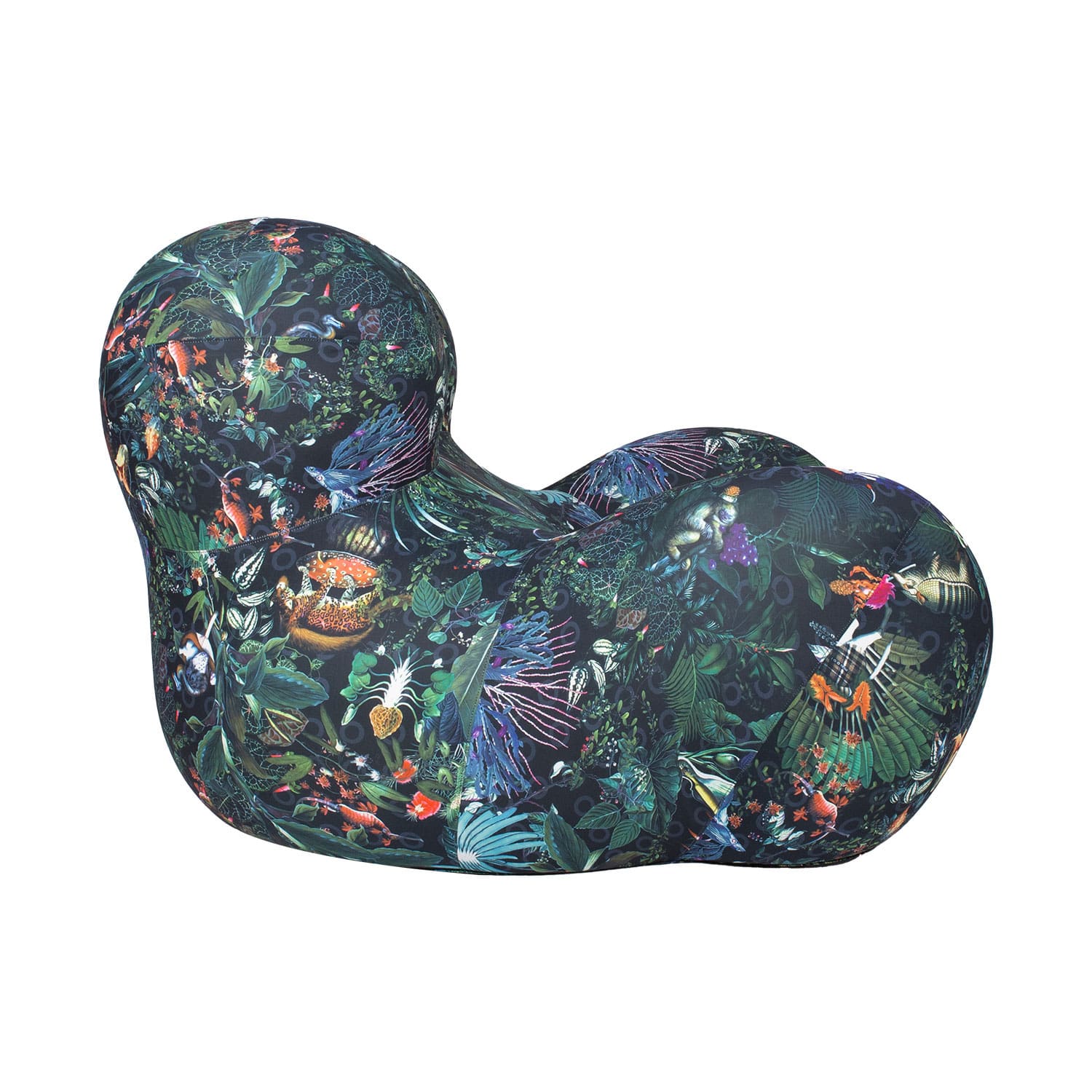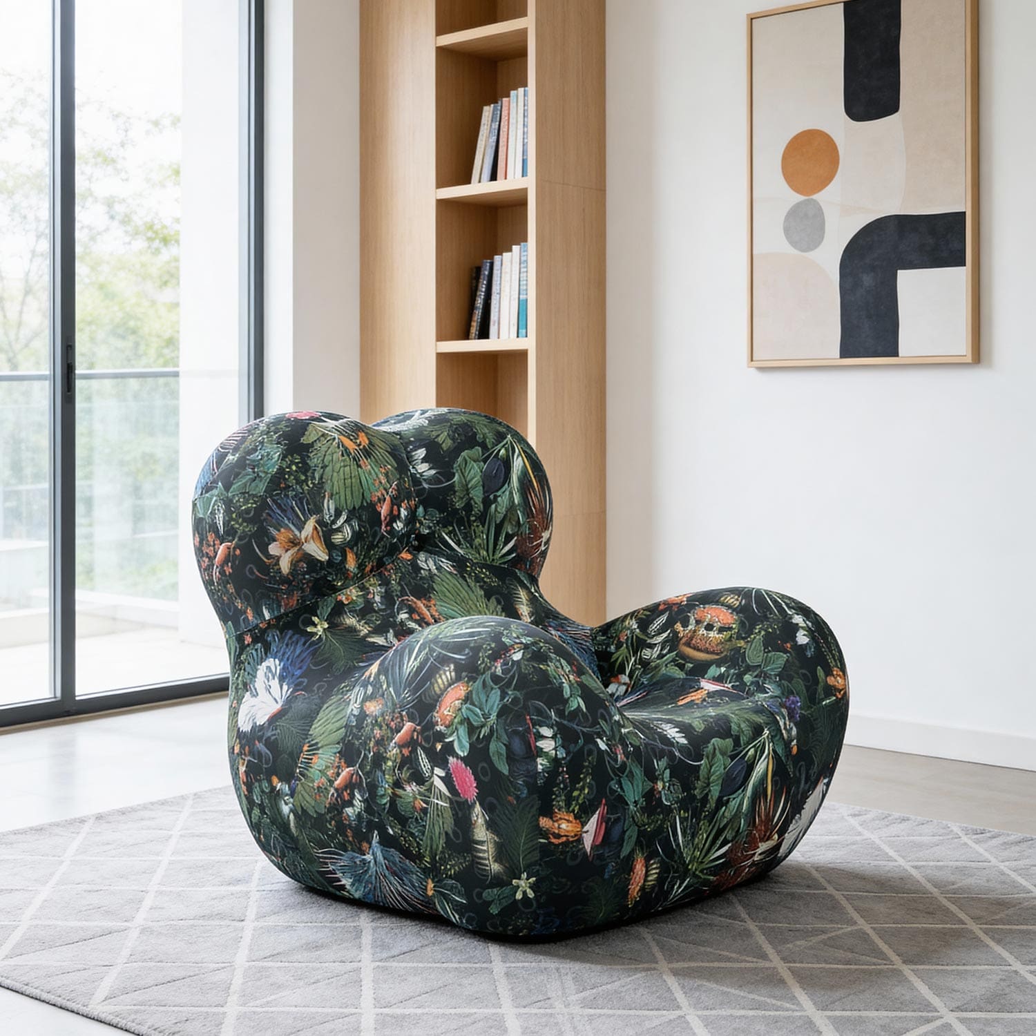 See efektne tugitool ühendab skulpturaalse vormi ja rikkaliku, loodusest inspireeritud mustri. Sügavad rohelised toonid, detailirohked taime- ja loomamotiivid loovad justkui eksootilise džunglimaailma, mis muudab iga ruumi elavaks ja meeldejäävaks.