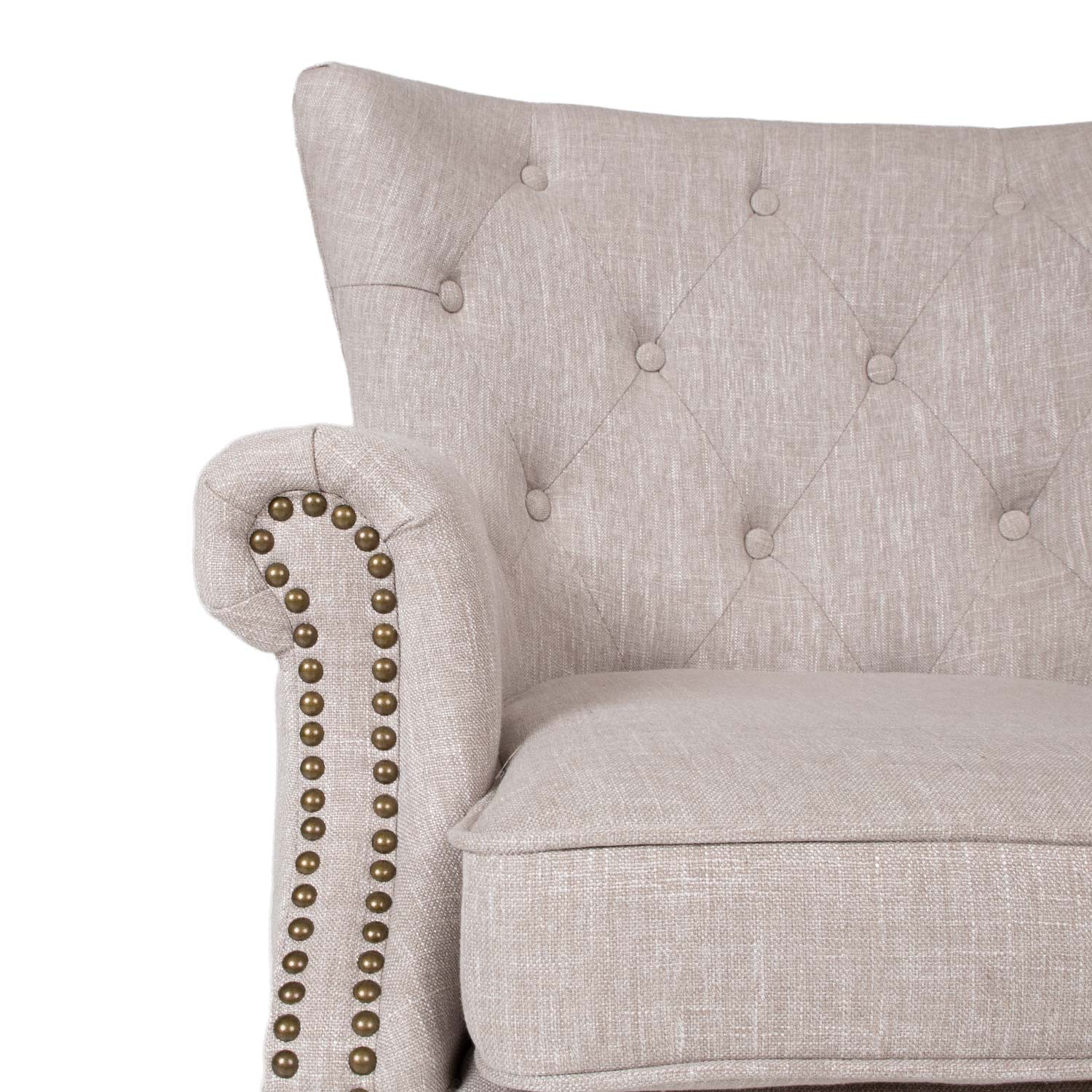 Tugitool on kaetud beeži linase välimusega kangaga.
