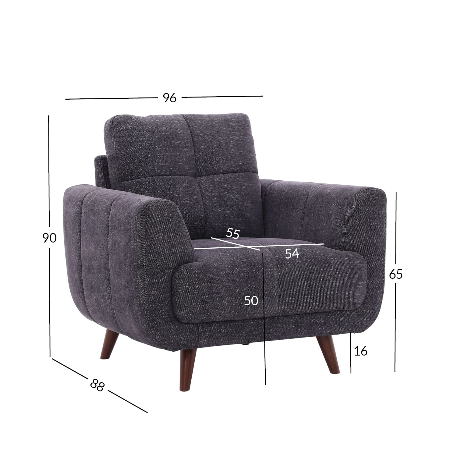 Tugitooli üldmõõdud on 96x88xH90cm. Istme laius 54cm, istme sügavus 55cm, istme kõrgus 50cm. Käetoe kõrgus maast 65cm.