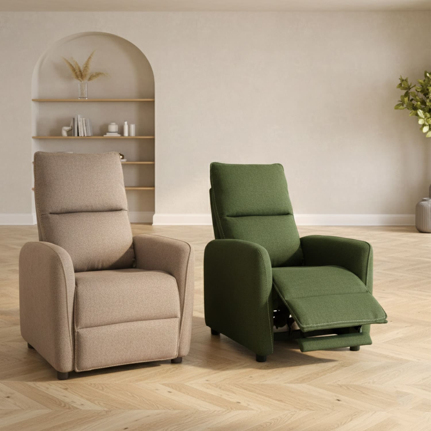 Recliner tüüpi tugitooli selja- ja jalatoe asendit on võimalik muuta manuaalse push back mehhanismi abil.