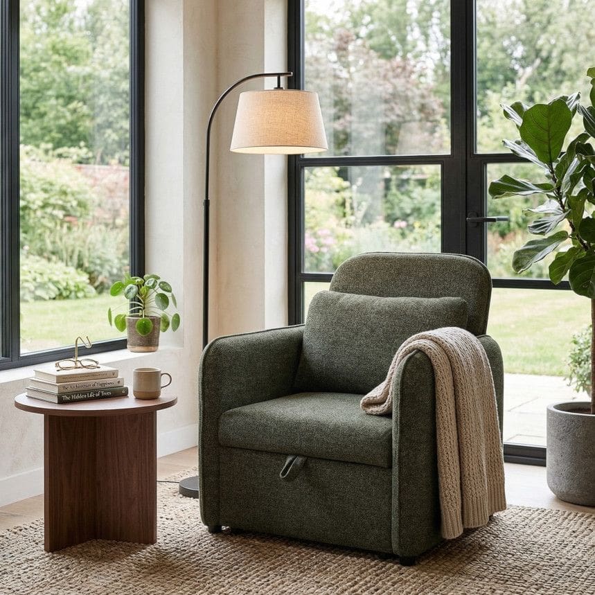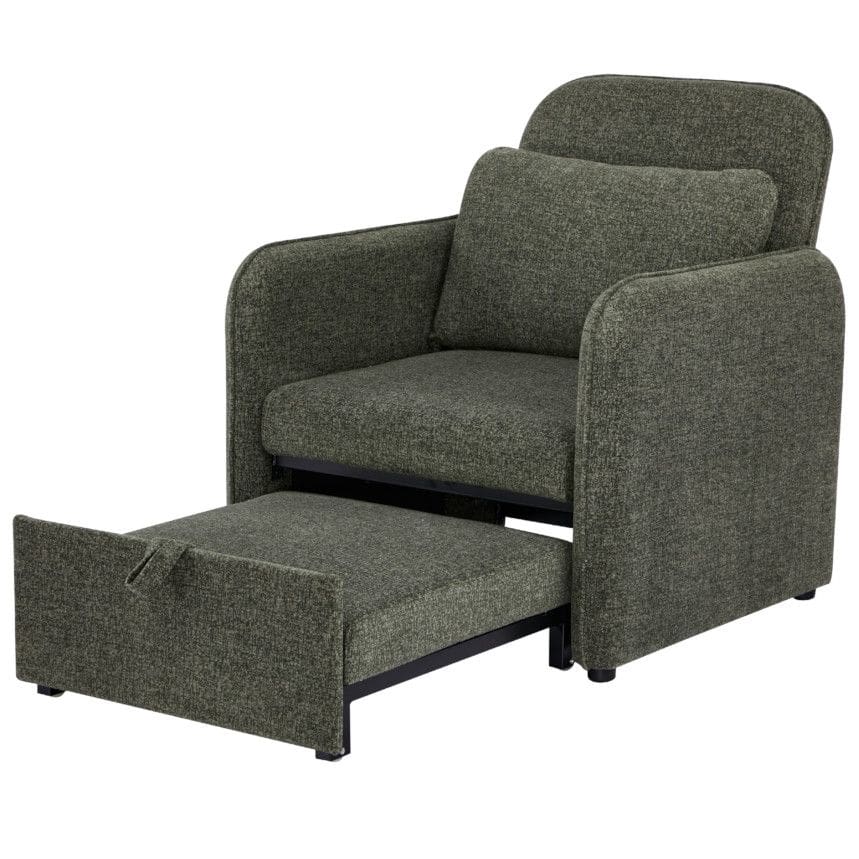 Tugitoolvoodi Lenno on praktiline ja mugav lahendus nii igapäevaseks istumiseks kui ka külaliste majutamiseks. Pehme polsterdus ja lai iste tagavad meeldiva istumismugavuse, samas kui lihtsasti avatav mehhanism võimaldab tooli kiiresti voodiks muuta. Kompaktne disain ja neutraalne rohekas toon sobivad hästi erinevatesse interjööridesse, pakkudes stiili ja funktsionaalsust üheskoos.