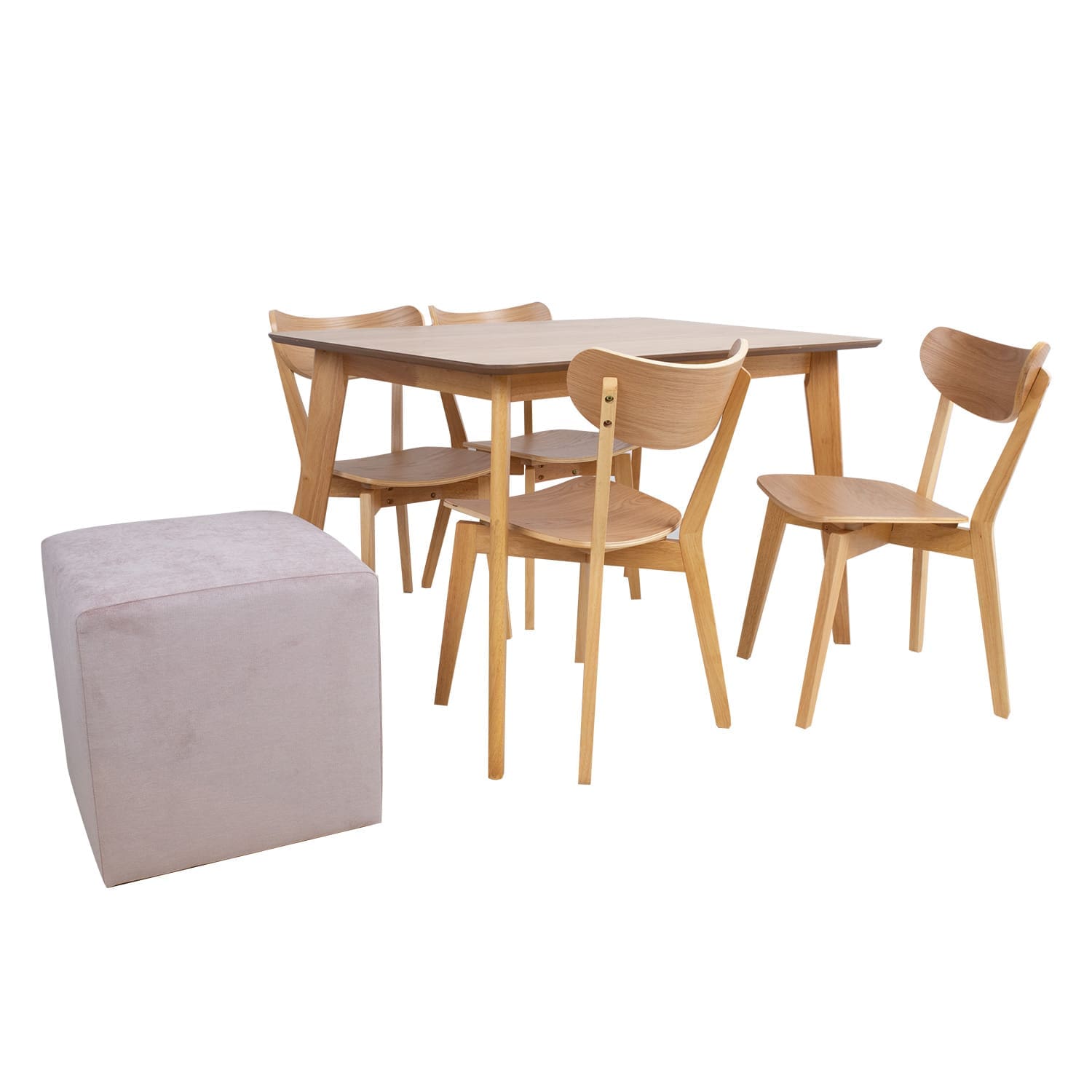 Tumba LYN roosa. Tumba on kaetud polüesterkangaga. Raam on valmistatud täispuidust, puitkiud- ja puitlaastplaadist. Tumbal on neli plastikust jalga. Jalad on 1cm kõrged. Toote mõõdud on 45x45xH45cm. Toode on valmistatud EL-is.