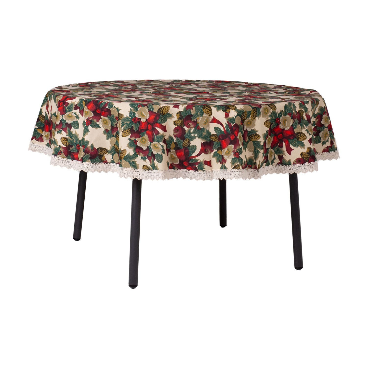 Laudlina WINTER FLOWERS pitsiga, D170cm, lindid, 50% polüester, 50% puuvill, kangas 475. HOOLDUS: võib pesta temperatuuril 30 kraadi pesumasinas.