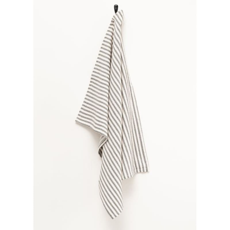 Halli-valgetriibuline taaskasutatud puuvillast köögirätik. Kena ning praktiline lisand igasse kööki.