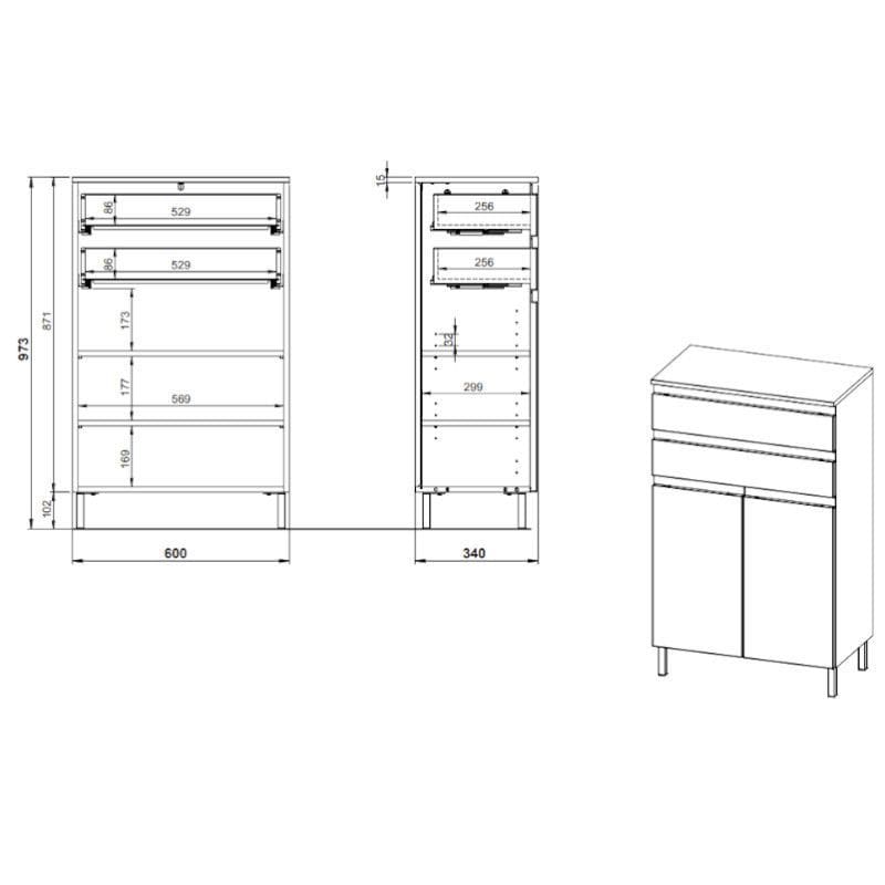 Kogu sarja mööbel on valmistatud melamiinkattega mööbliplaadist ning termovormitud MDFist. Seega on see ajas kestev ning niiskus- ja kriimustuskindel. Kapid teevad eriti vastupidavaks põrutuskindlad ABS servad. Kapil on kaks sahtlit ning nende all uste taga kaks vaheriiulit. Sahtlid ning uksed on varustatud soft-close süsteemiga.