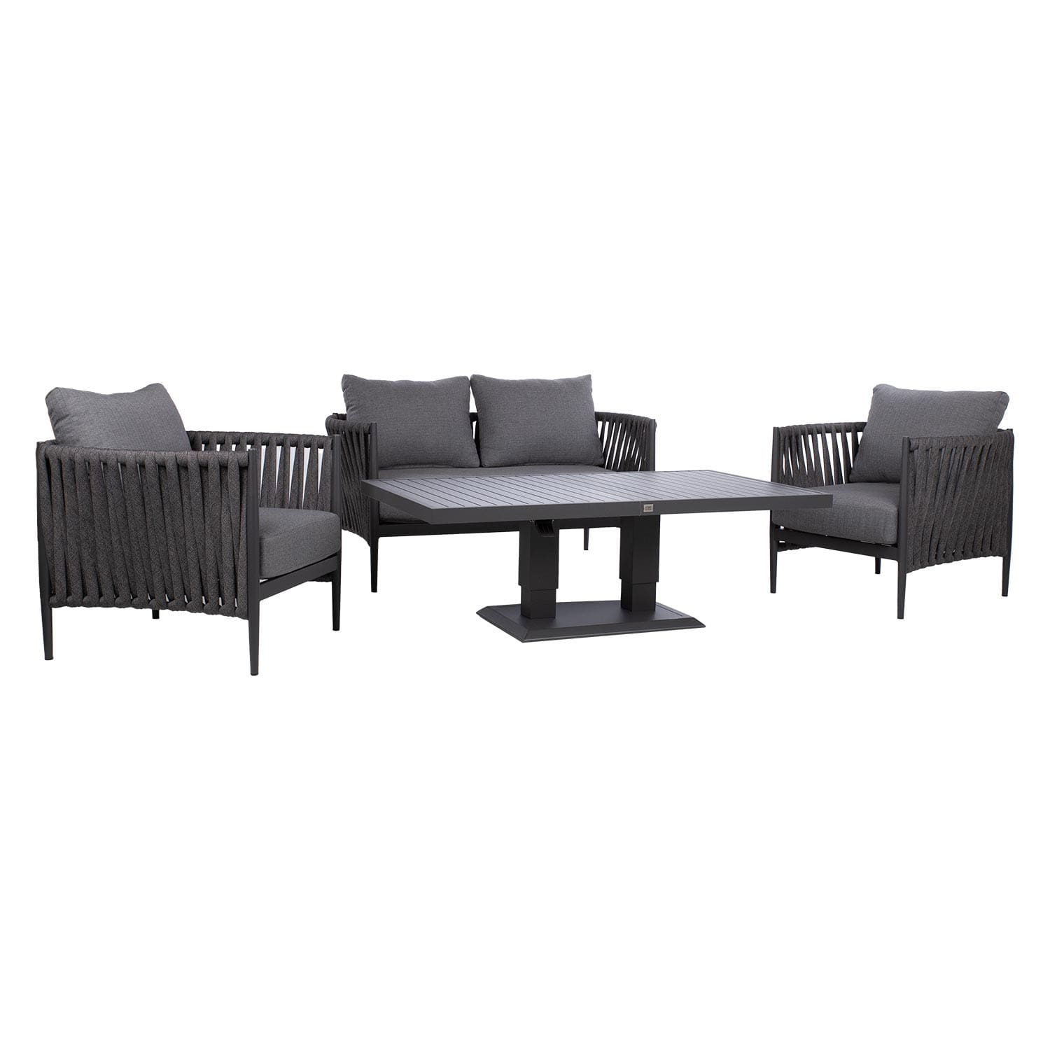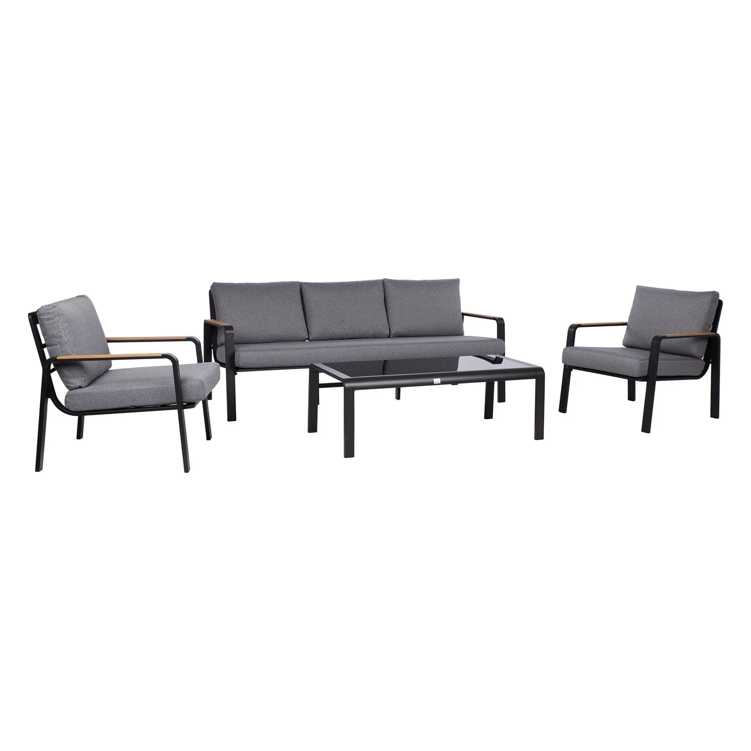 Aiamööblikomplekt LONA laud, diivan ja 2 tooli, hall/must