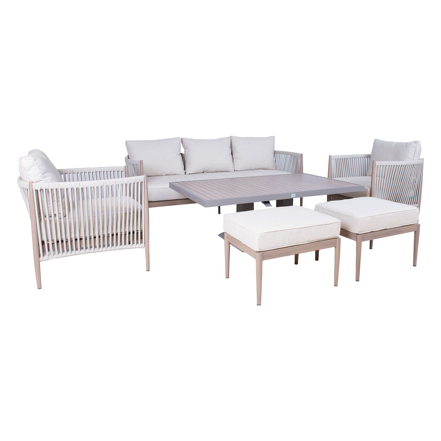 Aiamööblikomplekt MACOS laud, diivan ja 2 tooli, beež