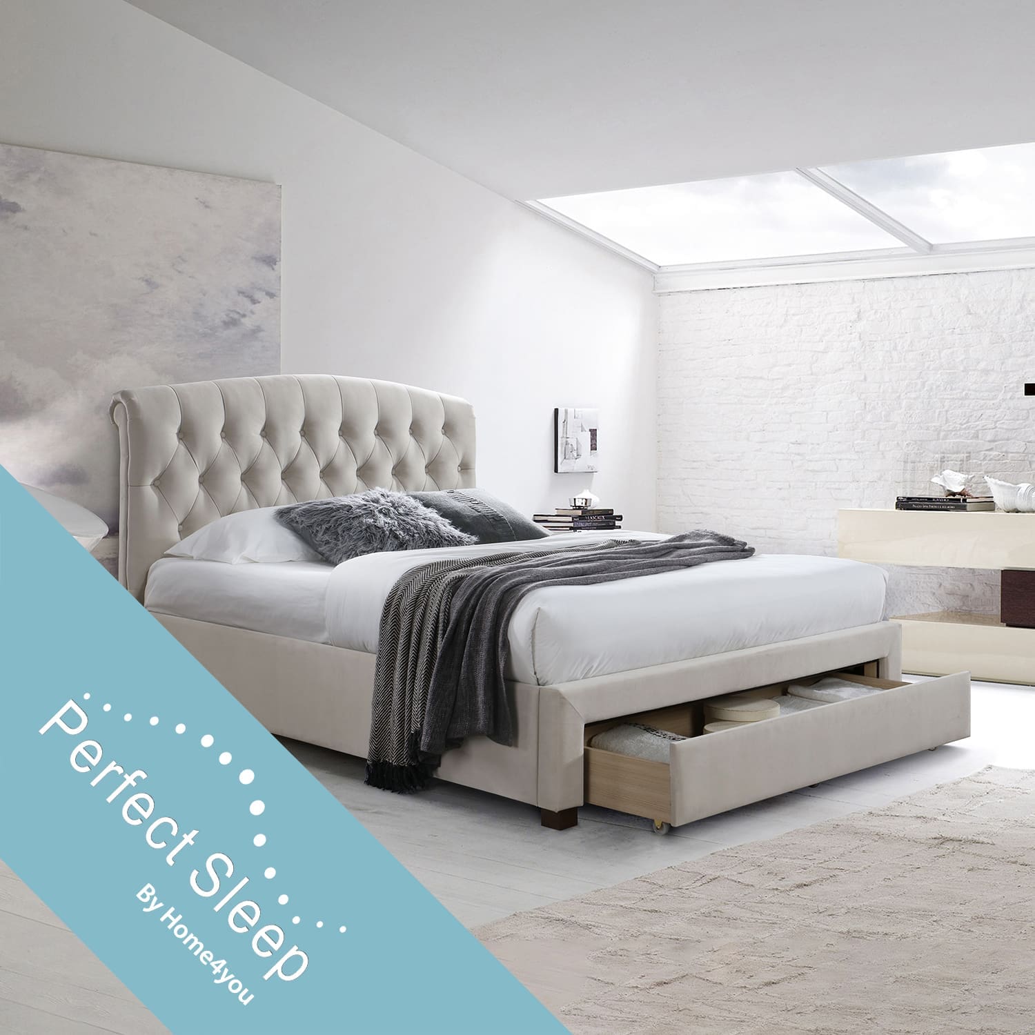 Voodi LARA madratsiga HARMONY UNO 90x200cm, šampanja